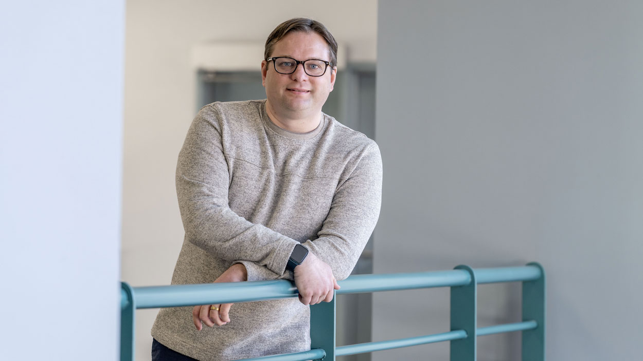 Jarad Perry earned his master’s degree in cybersecurity with an emphasis in information systems and technology. He’s now working as a manager of business process improvement at Mastercard. (Photos by Derik Holtmann)
