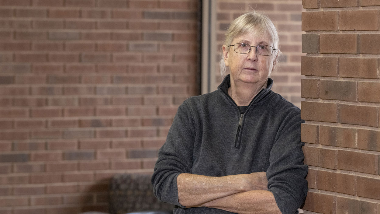 Sarah Boslaugh enrolled at UMSL more than two decades after earning her PhD so she could pursue a second bachelor’s in economics. She’s now working toward a master’s in philosophy after graduating last semester. (Photo by Derik Holtmann)