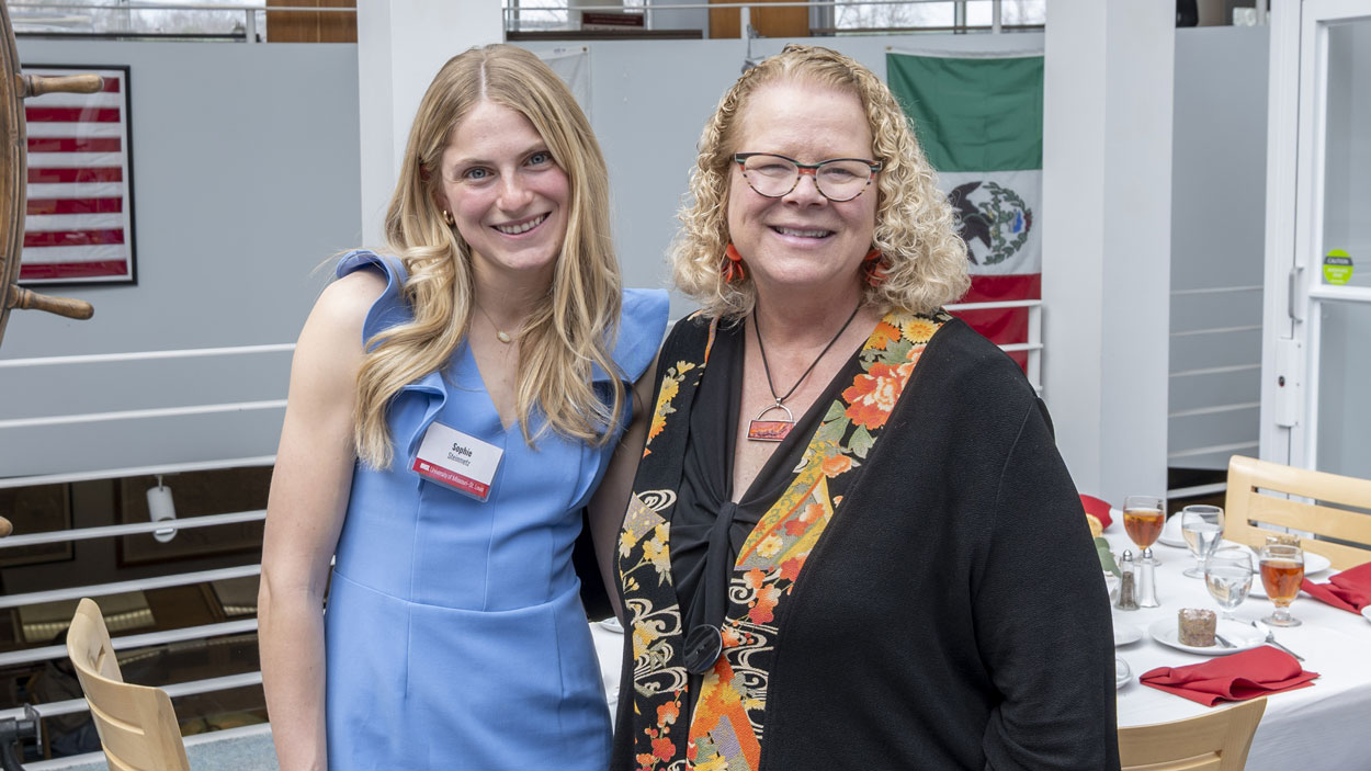 Senior Sophie Steinmetz and Chancellor Kristin Sobolik both expressed thanks to members of the 1963 Society for their philanthropic support during a March 19 luncheon in the St. Louis Mercantile Library.